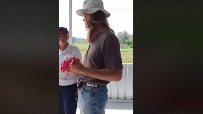 Dalam video terlihat turis asing sedang makan di pinggir jalan.