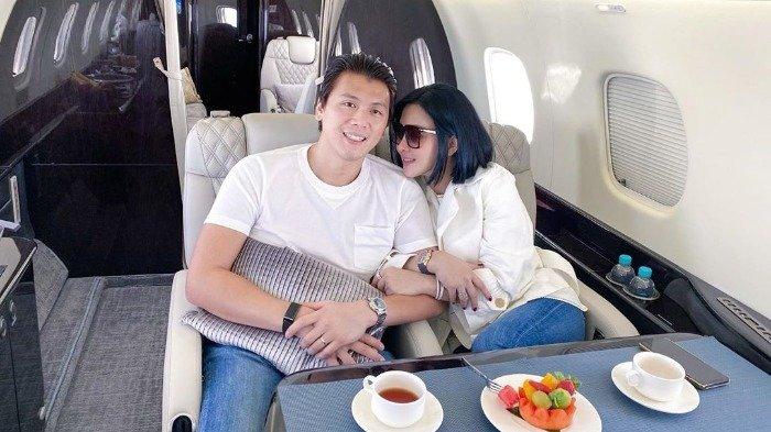 Sayahrini dan Reino Barack terlihat kompak berpose santai saat duduk dalam kursi pesawat.