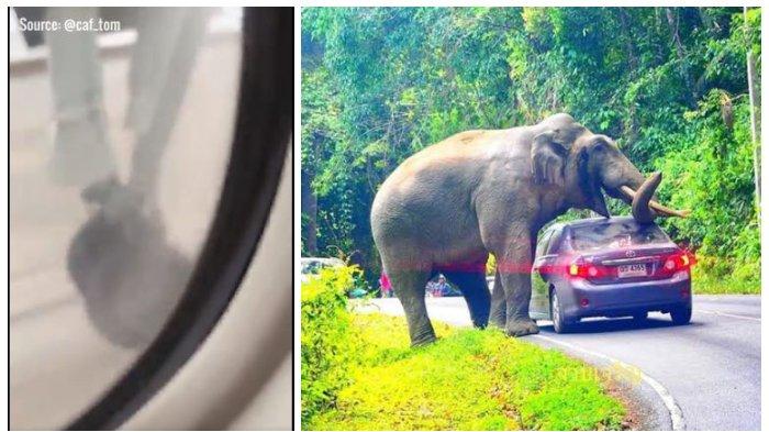 Dalam video tersebut terlihat gajah pertama kali menghalangi mobil yang hendak lewat, kemudian melangkahkan kakinya di bagian belakang mobil tersebut.