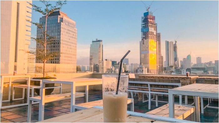 Kafe tersebut bernama Langit Seduh, letaknya di rooftop Takes Hotel Jakarta.