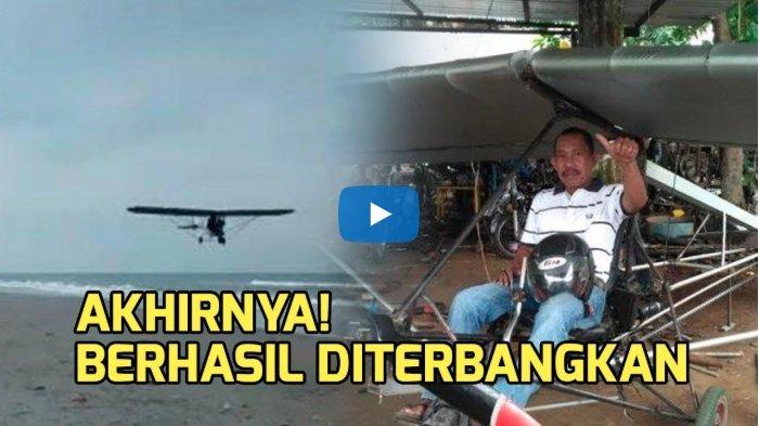 TRIBUNTRAVEL.COM - Beberapa kali melakukan uji coba, Haerul (33) akhirnya sukses menerbangkan pesawat rakitan sendiri.
