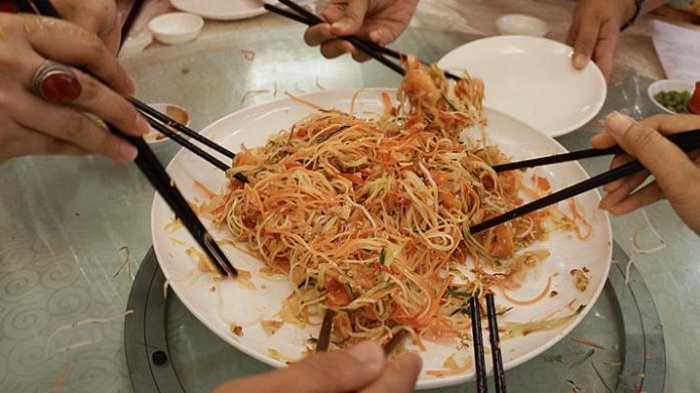 Lo hei, tradisi mengangkat yu sheng tinggi-tinggi saat Imlek
