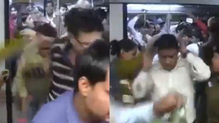 Seorang pengguna Twitter membagikan video yang berdurasi 33 detik di media sosial yang memperlihatkan para petugas polisi menyeret para pria itu keluar dari Metro New Delhi.