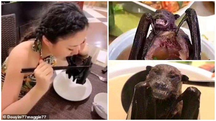 Dalam video tersebut, terlihat seorang wanita Asia makan kelelawar utuh di sebuah restoran.