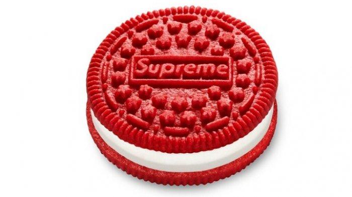 Dalam unggahan tersebut, terlihat biskuit Oreo bewarna yang biasanya berwarna hitam berubah menjadi merah dengan tulisan 'Supreme' di atasnya.
