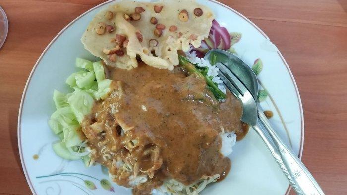 Bumbu kacang yang khas dicampur dengan sayur mayur juga nasi hangat, membuatnya semakin pas menjadi santapan enak.