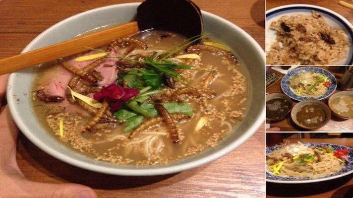 Jika traveler liburan ke Tokyo, pergilah ke restoran Nagi Ramen untuk mencoba semangkuk mie dan sup dengan ulat goreng dan jangkrik.