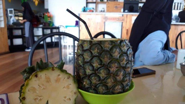Namun, bentuknya yang menjadikan sajian ini istimewa. Jus nanas itu terlihat sungguh menggiurkan.