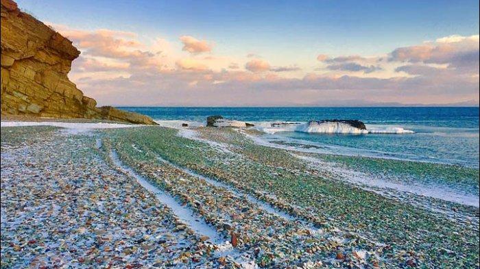 Namun jika kamu mengunjungi pantai ini di musim dingin seperti yang disarankan oleh situs siberiantimes.com, maka kamu akan bisa melihat indahnya warna pecahan kaca dengan salju yang menempel.