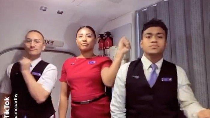 Mereka melakukan tarian TikTok di pintu depan kabin pesawat.