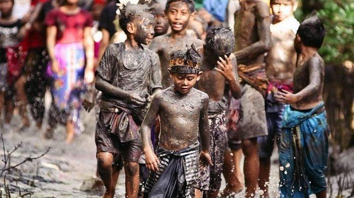 Bagi warga yang mengikuti tradisi Mebuug-buugan ini, akan melumuri seluruh badan mereka dengan lumpur.