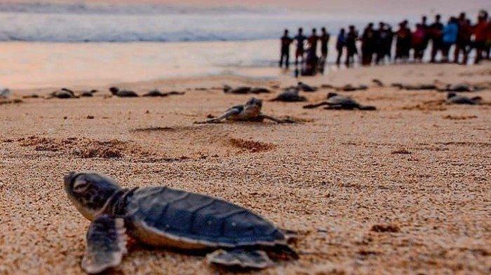 Menariknya lagi, di Pantai Pangumbahan juga ada penangkaran penyu yang bisa traveler lihat.