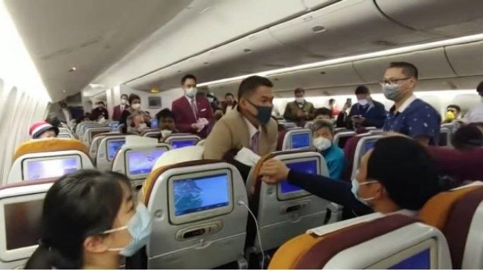 Perempuan itu mendesak agar staf dari Thai Airways membuka pintu agar dia bisa turun dari pesawat, namun ditolak oleh petugas.