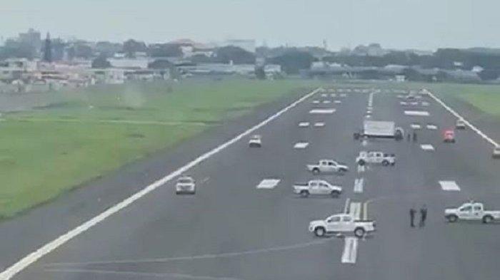 Dalam video yang diunggah oleh pengguna Twitter dengan akun @ArffManuel tersebut, terlihat beberapa mobil terparkir di landasan sehingga tidak ada ruang bagi pesawat untuk mendarat.