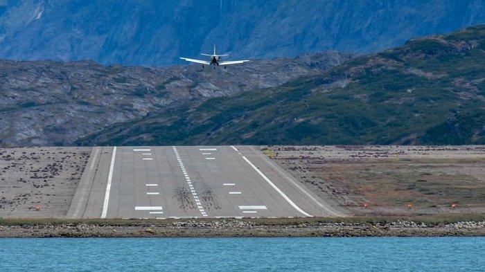 Untuk mendarat di Bandara Narsarsuaq, kamu harus melewati selat sempit dengan ancaman turbulensi yang hebat.