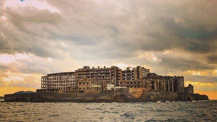 Pulau mungil seperti benteng ini terletak tak jauh dari pantai Nagasaki, Jepang.