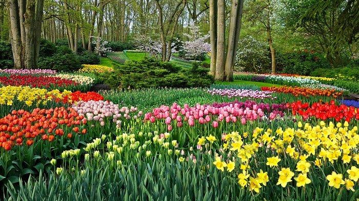 Setiap musim semi, Taman Keukenhof di Belanda selalu dihiasi jutaan tulip , serta eceng gondok, bakung, dan bunga-bunga lainnya.
