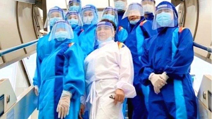 Pramugari Thai Airways yang melakukan penerbangan repatriasi juga mengenakan pakaian yang melindungi seluruh tubuh.