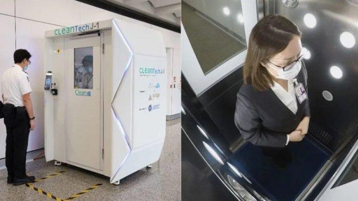 CLeanTech atau dijuluki "fasilitas disinfeksi seluruh tubuh" ini juga memeriksa suhu tubuh sebelum melakukan pembersihan virus penumpang.
