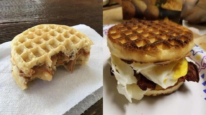 Kamu bisa membuat sandwich wafel atau roti dengan menambahkan telur, sosis dan sayuran dalam dua wafel atau roti tawar.