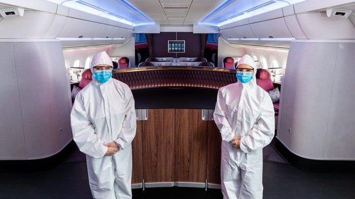 TRIBUNTRAVEL.COM - Qatar Airways mengumumkan informasi terbaru, semua kru pesawat akan mengenakan Alat Perlindungan Diri (APD) penuh mulai Senin (25/5/2020).