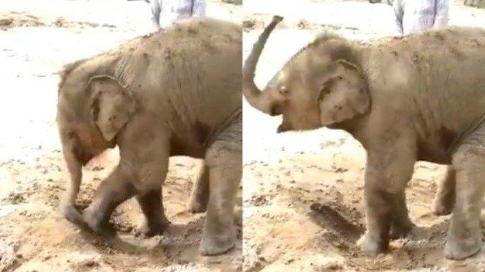 Dalam video terlihat seekor bayi gajah sedang asyik menikmati mandi lumpur untuk mendinginkan badannya dari terik matahari.
