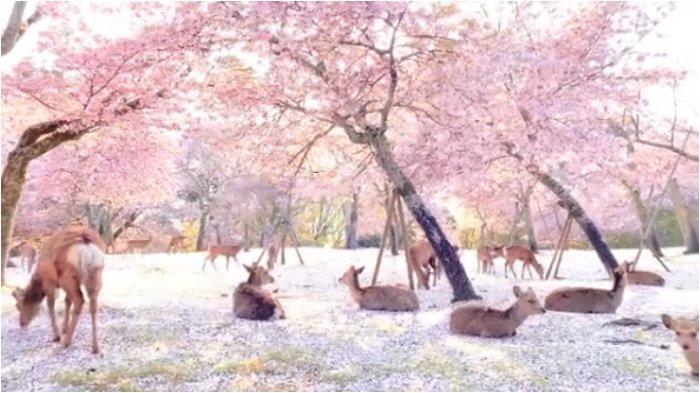 Sedangkan, video kawasan rusa yang sedang bersantai itu direkam sekitar enam minggu yang lalu, bertepatan dengan mekarnya bunga sakura.