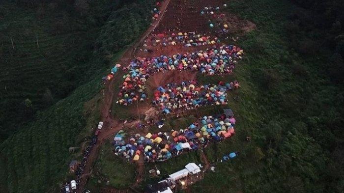 Di dalam foto tersebut, diperkirakan ada ratusan tenda pendaki atau wisatawan yang memadati bukit tersebut.