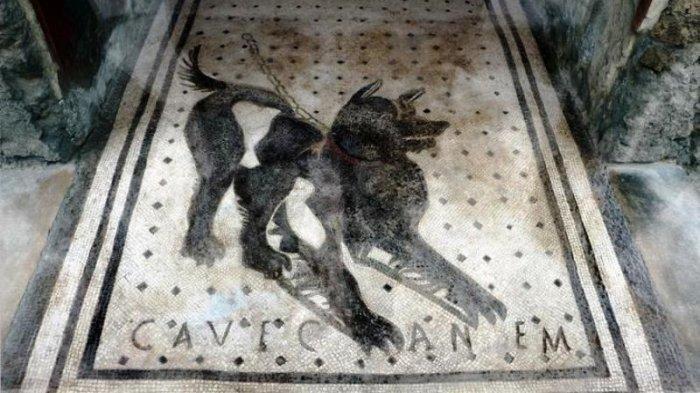 TRIBUNTRAVEL.COM - Sebuah mosaik bergambar anjing ditemukan di reruntuhan Kota Pompeii yang terkubur abu vulkanik.