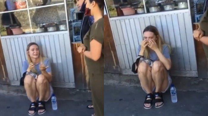 Dalam video tersebut, terlihat seorang bule menangis sambil menceritakan kejadian nahas yang menimpanya.