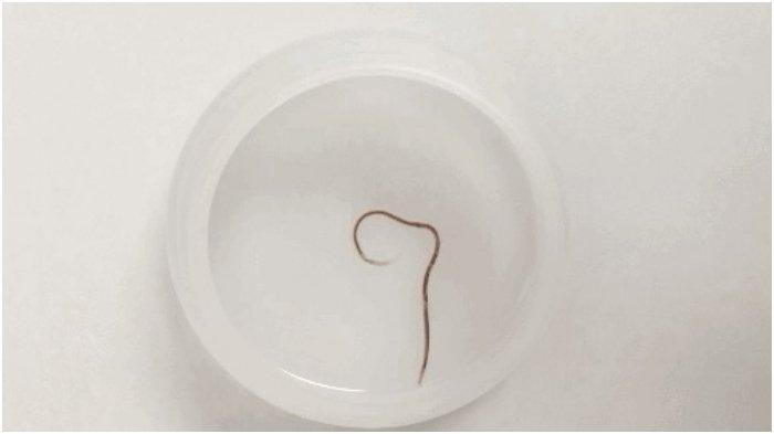 TRIBUNTRAVEL.COM - Seekor cacing hitam berukuran 3 cm ditemukan di dalam amandel kiri seorang wanita Jepang.