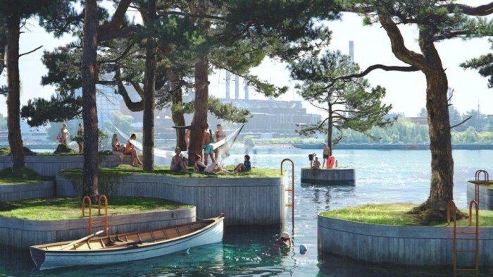 Sejumlah desainer dan arsitek di Kopenhagen menciptakan taman kota dengan pulau-pulau terapung di dalamnya.