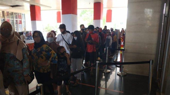 Bahkan, saking banyaknya, antrean pengunjung mengular hingga ke bagian luar Mal Tentrem.