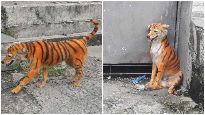TRIBUNTRAVEL.COM - Viral di medsos unggahan beberapa foto yang memperlihatkan anjing liar yang dicat seperti harimau.