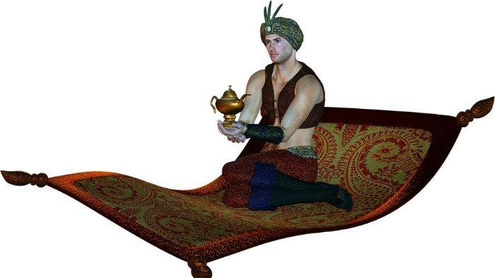 Meski karpet terbang itu hanya bisa memuat saru orang untuk sekali terbang.