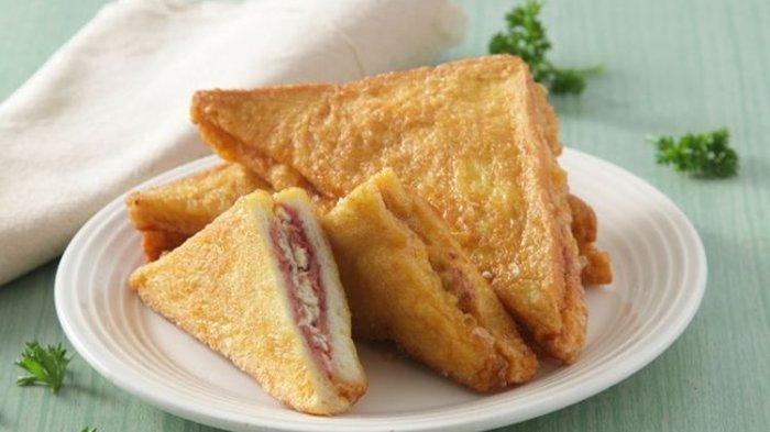 Salah satu resep kreasi roti tawar adalah roti goreng kornet keju.