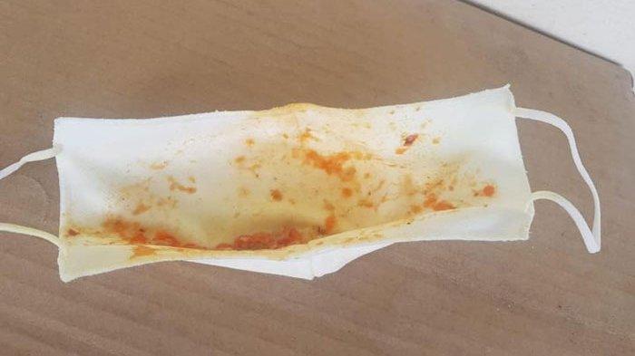Secara tidak sengaja muntahannya ini justru mengotori maskernya.