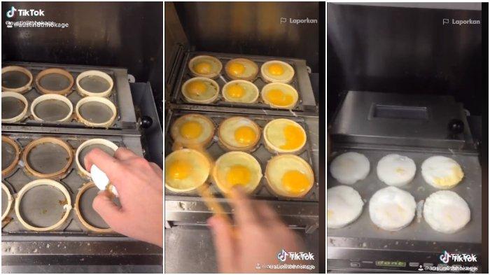 Dalam video itu, telur dipecah menjadi lingkaran di atas nampan.
