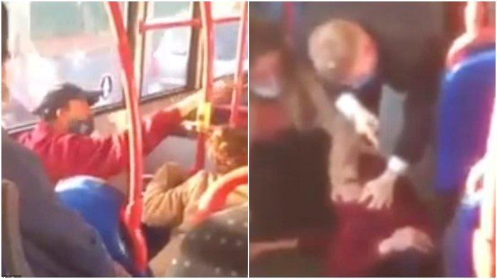 Dalam rekaman itu menunjukkan pria paruh baya dan wanita 16 tahun bertengkar karena dia tidak mengenakan masker di dalam bus.