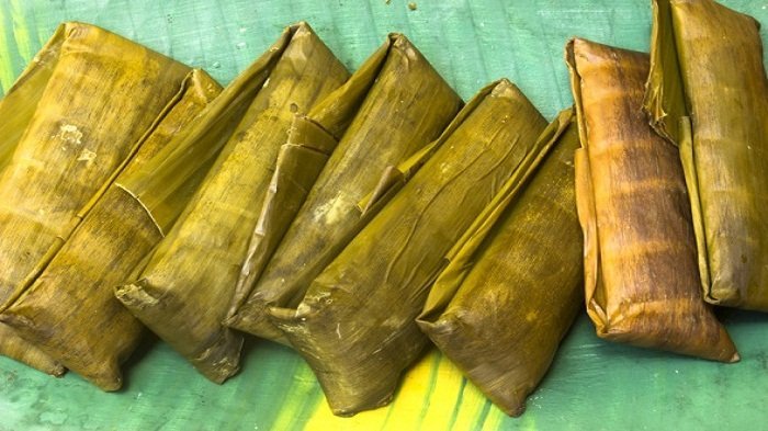Bahan Kue Selingkuh terbuat dari beras yang dibungkus dengan daun pisang.