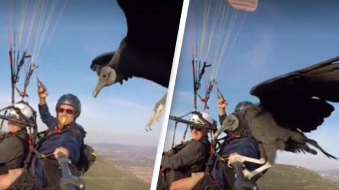 TRIBUNTRAVEL.COM - Viral di medsos video dua orang pemain paralayang yang sedang santai di udara tiba-tiba dikejutkan seekor burung gagak.
