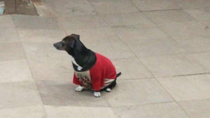 Anjing yang menggemaskan ini tampak mengenakan jaket merah dan mirip dengan warna ambulans.