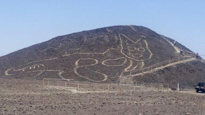 TRIBUNTRAVEL.COM - Arkeolog Peru menemukan kucing sepanjang 37 meter di daerah Nazca Lines.