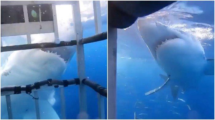 TRIBUNTRAVEL.COM - Seekor hiu putih besar mencoba menerobos masuk ke dalam kandang yang menampung tiga turis wanita.