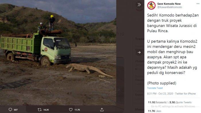 U pertama kalinya Komodo2 ini mendengar deru mesin2 mobil dan menghirup bau asapnya. Akan spt apa dampak proyek2 ini ke depannya? Masih adakah yg peduli dg konservasi?," tulis akun Twitter yang menamakan diri mereka Save Komodo Now.