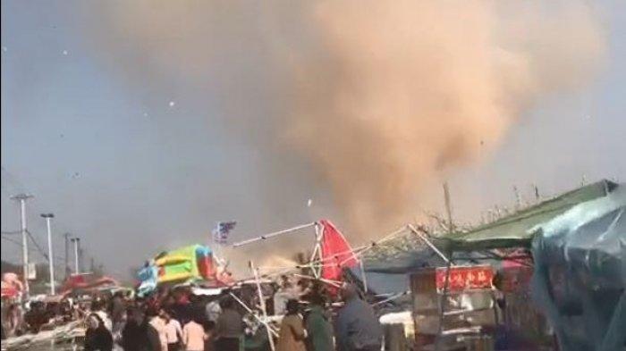 TRIBUNTRAVEL.COM - Dua anak tewas dan puluhan lainnya terluka akibat angin topan yang memporak-porandakan sebuah pameran di China.