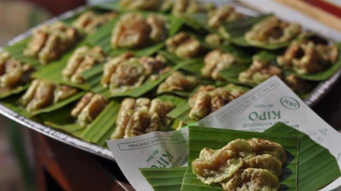 Kipo dikemas dalam bungkusan daun pisang dan kertas ini berisi 5 buah kipo yang berukuran sejempol ini dihargai hanya Rp 2.500 saja.