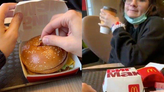 Seorang pria melamar kekasihnya menggunakan burger Big Mac dari McDonald's.