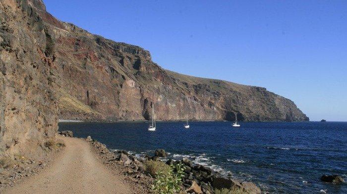 Bongkahan tebing besar terpotong begitu saja dan potongannya itu jatuh ke lepas pantai di pulau La Gomera pada hari Sabtu.