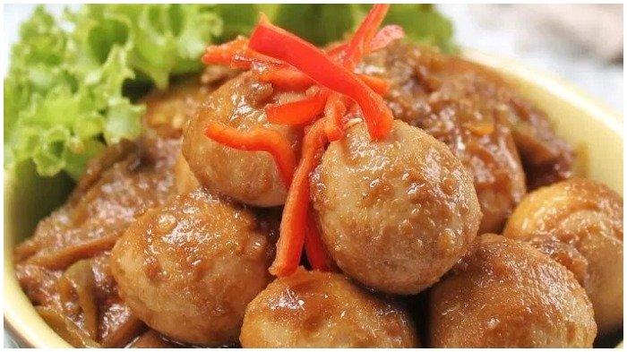 Semur bola daging siap disajikan, kamu bisa taburi semur dengan dengan bawang merah goreng.